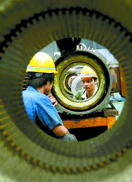 “轉(zhuǎn)方式、正風(fēng)氣、提效能”活動(dòng)讓南陽(yáng)的經(jīng)濟(jì)發(fā)展環(huán)境日益優(yōu)化,使許多大項(xiàng)目、大企業(yè)駛?cè)氚l(fā)展的快車(chē)道。圖為南陽(yáng)防爆集團(tuán)股份有限公司技術(shù)人員正在生產(chǎn)訂單出口防爆電機(jī)。
