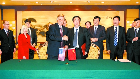 郭庚茂 邁克·畢比分別代表雙方在協(xié)議書(shū)上簽字