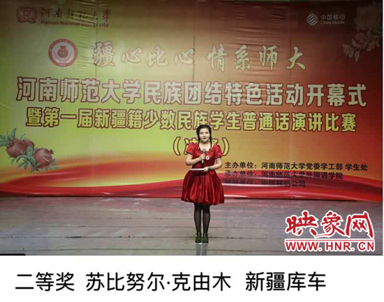 映象網(wǎng)訊 11月27日,由河南師范大學(xué)黨委學(xué)工部、學(xué)生處主辦、外國語學(xué)院承辦的河南師范大學(xué)民族團結(jié)特色活動暨第一屆新疆籍少數(shù)民族學(xué)生普通話演講比賽在帕瓦羅蒂音樂廳舉行。