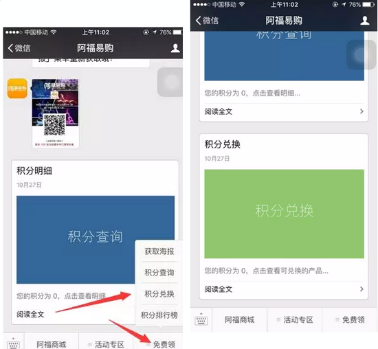 2.在阿福易購微商城中購物一單可獲得十積分,原有積分可繼續(xù)使用。
