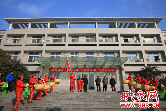 映象網(wǎng)訊(記者 王文凱 通訊員 牛智瑞 薛勇)為感謝滎陽(yáng)警方很短時(shí)間內(nèi)破獲盜挖秦氏家族祖墳案,1月3日早上10時(shí)許,河南省秦氏協(xié)會(huì)鄭州聯(lián)絡(luò)處、滎陽(yáng)秦氏家廟理事會(huì)會(huì)長(zhǎng)及成員,以及高村鄉(xiāng)油坊村村主任等30多人一行來到滎陽(yáng)市公安局刑偵大隊(duì),將一面“人民衛(wèi)士智勇擒獲盜墓賊、保穩(wěn)定保文物守一方平安”的錦旗送給刑偵大隊(duì)領(lǐng)導(dǎo)。