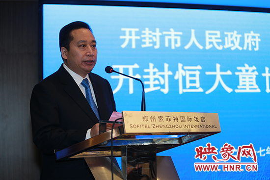 當(dāng)日下午,在河南省委常委、常務(wù)副省長翁杰明和恒大集團董事局主席許家印等嘉賓見證下,開封市長侯紅和恒大集團常務(wù)副總裁兼恒大旅游集團董事長肖恩代表雙方在合作協(xié)議書上簽字。