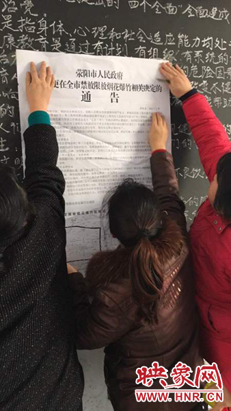 映象網(wǎng)訊(記者 王文凱 通訊員 李文利 趙露瀅)新春佳節(jié)將至,為減少環(huán)境污染,切實(shí)保障轄區(qū)人民群眾身體健康和財(cái)產(chǎn)安全,預(yù)防安全事故發(fā)生,滎陽(yáng)市索河辦堅(jiān)決落實(shí)上級(jí)禁限放煙花爆竹有關(guān)會(huì)議精神,將禁限放煙花爆竹宣傳工作作為當(dāng)前重中之重,采取五項(xiàng)措施,全力以赴做好禁限放宣傳工作。
