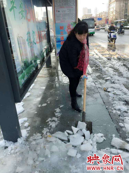 滎陽:百余公交人 街頭除冰雪