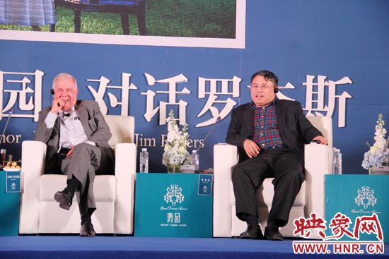 12月20日,河南省委宣傳部副部長、省新聞出版廣電局局長朱夏炎(右)與羅杰斯就文化產(chǎn)業(yè)投資展開對(duì)話。