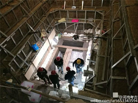 據(jù)@河南考古 微博消息,近日在河南一座古墓發(fā)掘現(xiàn)場(chǎng),出土了幾只裝有“肉湯”大鼎,。