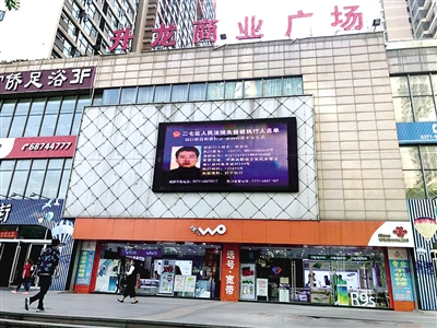 在二七轄區(qū)的一些小區(qū)及升龍廣場(chǎng)、金博大廣場(chǎng)等處,記者發(fā)現(xiàn)這些地方的LED屏幕每天都在滾動(dòng)播放著欠錢“老賴”,公布的老賴名單中包含姓名、大頭貼照片、身份證號(hào)、家庭地址、執(zhí)行案號(hào)、執(zhí)行標(biāo)的及失信情形等信息。