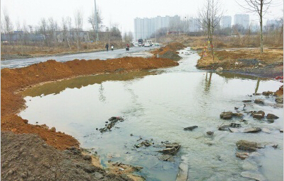 市民王先生反映,南水北調(diào)大橋南邊的祈福大道上,到處都是積水?,F(xiàn)在水深一米多,長度有近百米,連公交車都不能通過?!白蛱煜掠辏e水更深,啥車都過不去。我們在這里幫助推滅火的車,不知推了多少輛?!?/font>