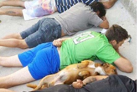 巴西警方最近搗毀了一個毒販老巢。警察剛破門的時(shí)候毒販家的看門狗還對著警察狂叫,后來發(fā)現(xiàn)它的主人被警察制服了以后,居然也跟著主人一樣自覺躺在地上一動不動了……