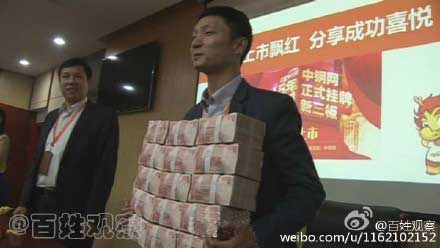 昨天,鄭州某電商公司召開員工“分紅”大會。老板現(xiàn)場拿出1400萬現(xiàn)金,用來獎勵業(yè)績突出的員工。據(jù)說,一捆錢是人民幣10萬,當(dāng)天不少員工都帶著麻袋到現(xiàn)場領(lǐng)錢?。。。?!小編已經(jīng)不知道該說什么,弱弱的問一句,貴公司還招人嗎?
