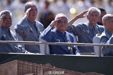 人民網(wǎng)北京9月4日電 9月3日,中國(guó)人民抗日戰(zhàn)爭(zhēng)暨世界反法西斯戰(zhàn)爭(zhēng)勝利70周年紀(jì)念大會(huì)在北京舉行。千人合唱團(tuán)吼出氣勢(shì)恢宏的抗戰(zhàn)歌,威武三軍昂首正步走過(guò)天安門廣場(chǎng),抗戰(zhàn)老兵神情鄭重再敬軍禮,規(guī)??涨暗目罩刑蓐?duì)拉起勝利彩虹.....回顧閱兵中的種種細(xì)節(jié),你是否仍然心緒難平?
