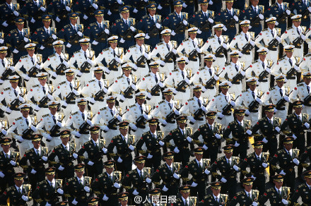 中國(guó)閱兵史上的首次設(shè)置合唱團(tuán),一千多名隊(duì)員全部由總裝、海軍、空軍所屬院校的學(xué)員組成,為網(wǎng)友們奉獻(xiàn)了“最霸氣的現(xiàn)場(chǎng)演唱會(huì)”。