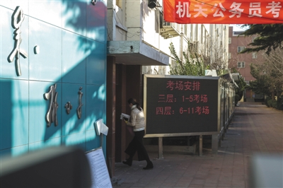今年國考北京全市共設(shè)置了100個考點。昨日,記者來到北京林業(yè)大學(xué)第二教學(xué)樓的考點。11時許,考生結(jié)束了行政能力測試的考試離開考場。一名考生告訴記者,今年的考題“數(shù)量關(guān)系”部分難度不小,自己沒有答完?!拔业谝淮螀⒓訃?,也做過以前的考卷,但感覺今年還是比較難,數(shù)學(xué)題有點像奧數(shù),后面沒做完,有好多是蒙的。”這位考生說。