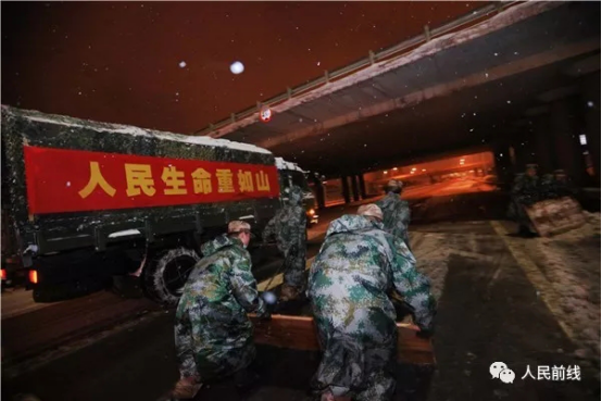 1月25日晚開始,東部戰(zhàn)區(qū)和江蘇省軍區(qū)緊急派出官兵,奔赴駐地掃雪除冰、清理道路,保障人民出行安全。