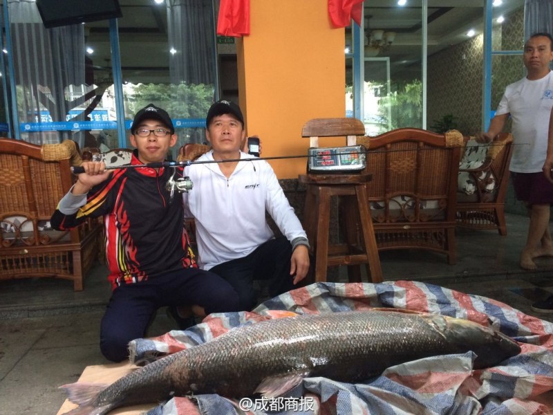 這個(gè)大家伙是什么魚?53歲的劉躍軍和29歲的劉晨都沒見過,他們都有近10年的釣魚經(jīng)驗(yàn),三岔湖當(dāng)?shù)厝艘矝]見過?!笆趋狋~!”一位釣友說。記者在網(wǎng)上查詢發(fā)現(xiàn),此魚外形確實(shí)與鳡魚的照片非常像,應(yīng)該是同一品種。隨后,多位資深漁友也表示,此魚確為鳡魚。據(jù)了解,鳡魚并非四川原生態(tài)魚種,是一種主要以小型魚類為食的兇猛魚類。鳡魚最大個(gè)體長達(dá)2米,重可達(dá)60公斤?!搬炂鹑绱舜蟮聂~,在四川釣魚界也極為罕見?!辟Y深漁友說。(成都商報(bào)記者 鎖千程 實(shí)習(xí)生 任毅 攝影報(bào)道)