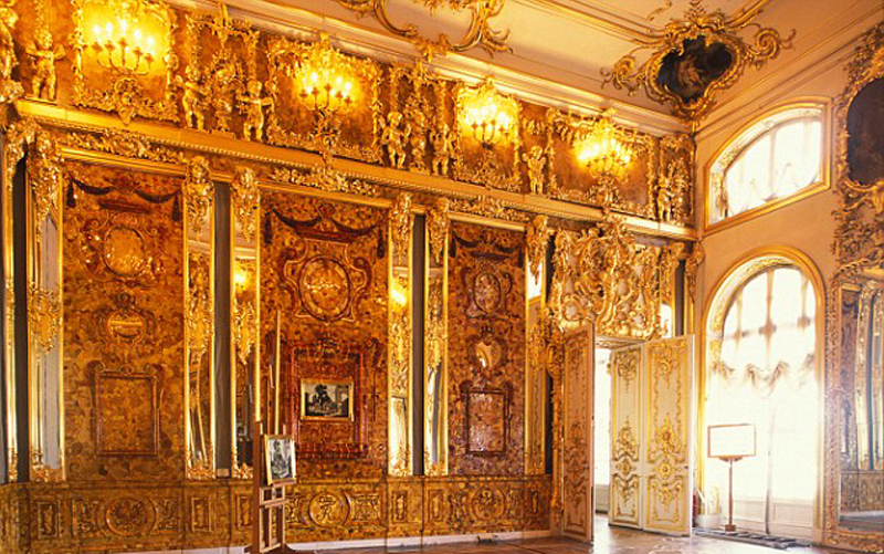據(jù)悉,所謂的琥珀屋最初據(jù)說(shuō)只是一個(gè)琥珀櫥柜,但最終被擴(kuò)大為琥珀屋,共用掉450公斤琥珀,直到1770年才完工。納粹于1941年10月份攻陷位于圣彼得堡附近的凱瑟琳宮,并將琥珀屋拆除帶走,最終通過(guò)鐵路將琥珀屋運(yùn)回當(dāng)時(shí)東普魯士的科尼斯堡城堡(Koenigsberg Castle)安放。可是在1945年1月份,這里遭到空襲和激烈的地面攻擊,琥珀屋從此下落不明。