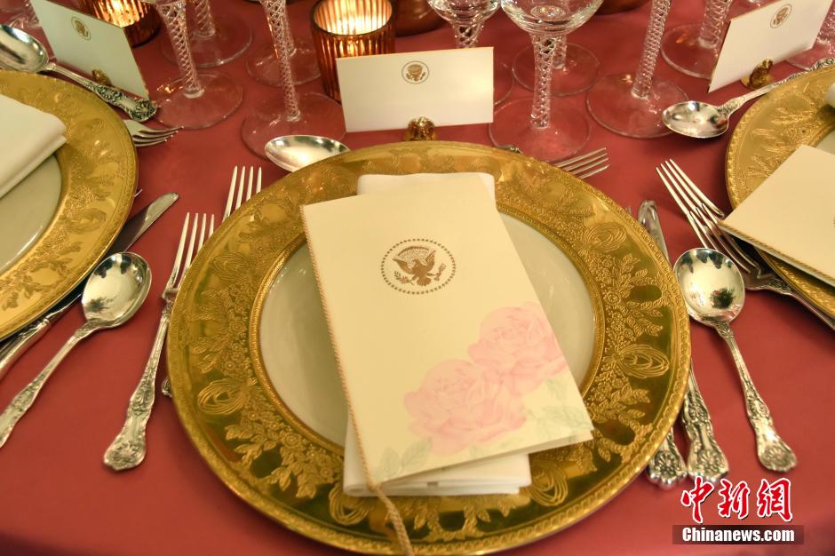 當(dāng)?shù)貢r(shí)間9月24日,美國白宮第一夫人辦公室發(fā)布了白宮為中國國家主席習(xí)近平和夫人彭麗媛舉行的國宴的菜單,并介紹了餐桌布置等情況。據(jù)這份菜單,紹興黃酒和南瓜月餅將亮相國宴。此外,白宮還邀請(qǐng)了華裔名廚參與此次國宴的準(zhǔn)備。中新社記者 刁海洋攝