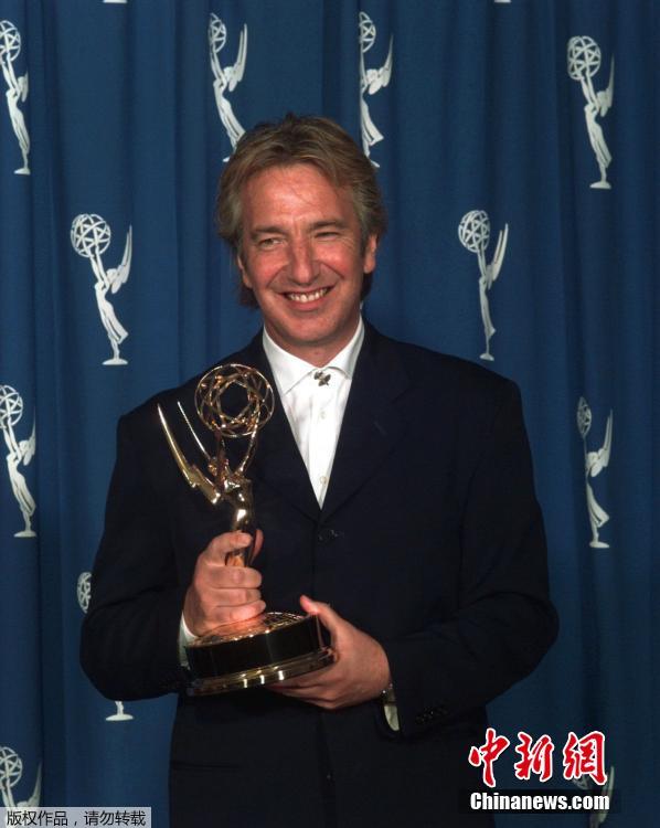 圖為1996年9月8日,阿倫·瑞克曼(Alan Rickman)贏得第48屆艾美獎(jiǎng)最佳男主角。