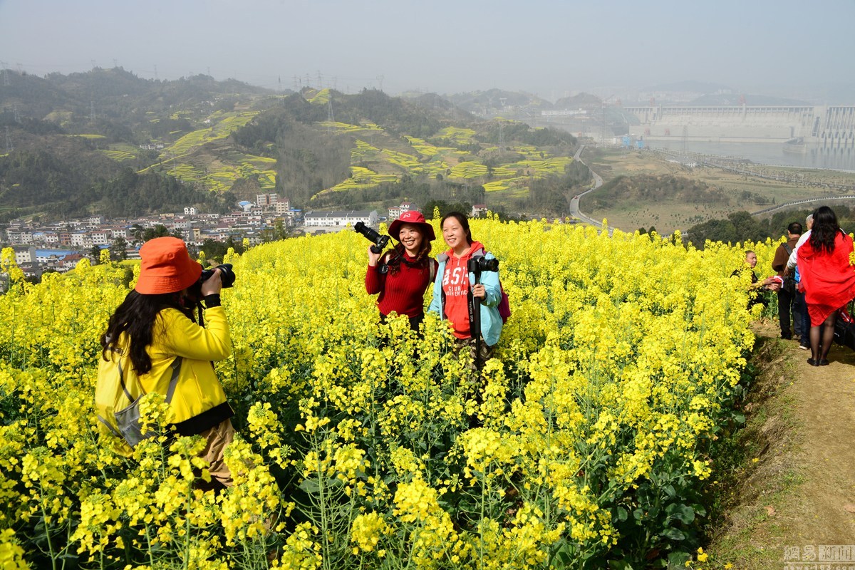 2016年3月6日,湖北宜昌,隨著春季氣溫的回升,湖北宜昌三峽壩區(qū)高家溪油菜花絢麗綻放,把三峽大壩映襯得分外壯觀(guān)美麗,吸引了眾多攝影發(fā)燒友和游人前來(lái)踏青采風(fēng)游覽。當(dāng)天一位練瑜伽的大媽陶醉于壩前花海,秀起了瑜伽,一時(shí)吸引了攝影發(fā)燒友和游人瘋狂拍攝。圖為大媽花海中秀瑜伽。