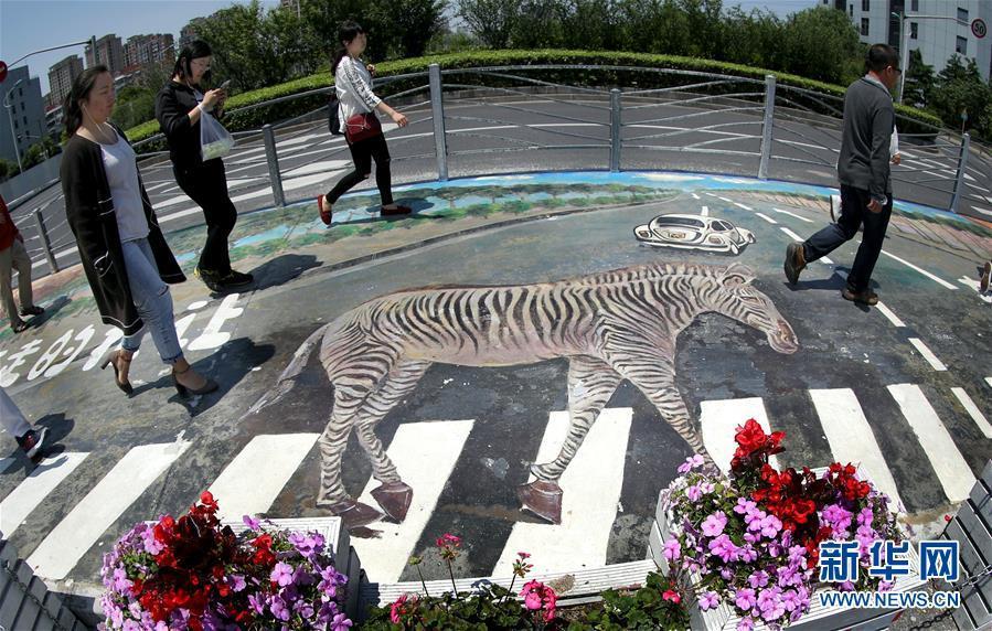 5月16日,行人從上海漕河涇開發(fā)區(qū)一處3D斑馬線上走過。近日,上海漕河涇開發(fā)區(qū)的一條人行橫道線變身一幅3D效果圖畫,還“植入”了宣傳行走禮讓的標(biāo)語(yǔ),呼吁文明出行。 新華社記者 凡軍 攝 圖片來源:新華網(wǎng)