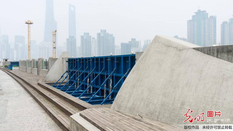 “抗洪神器”現(xiàn)身外灘 專家稱安全過關(guān)暫不擴(kuò)建(王岡攝/光明圖片)