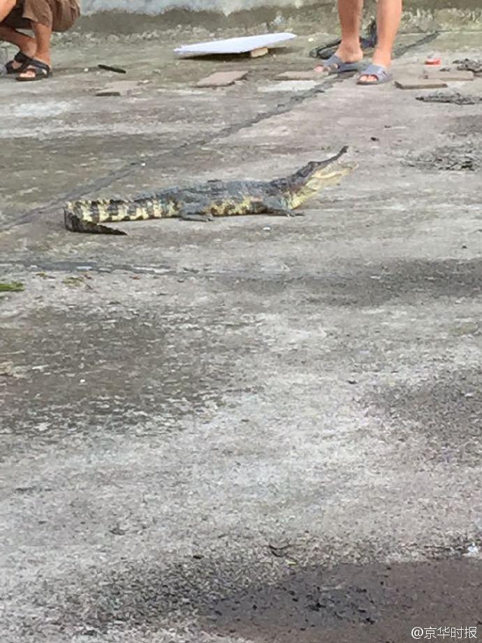 后來(lái)了解到,她家樓上5樓一住戶家里養(yǎng)了2條鱷魚,昨晚其中一條從窗戶逃跑了。