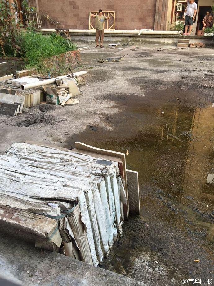 21日,四川省自貢市范女士告訴記者,昨晚樓上鄰居家的鱷魚“跳樓”了,掉進(jìn)她家一樓的小花園里。