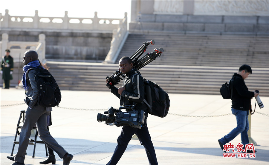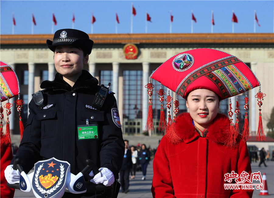 映象網(wǎng)北京訊(大象融媒飛象隊(duì)記者 段晉哲 文/圖)2017年3月5日,第十二屆全國(guó)人大五次會(huì)議在人民大會(huì)堂召開(kāi)。場(chǎng)外的記者、安保人員、服務(wù)人員、保潔人員等都用自己的方式參與其中。他們?cè)谔彀查T(mén)廣場(chǎng)上和人民大會(huì)堂前,都留下了自己最美麗的身影。