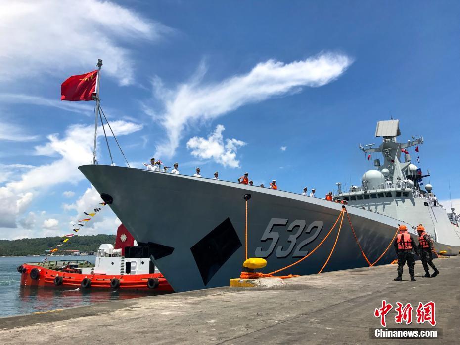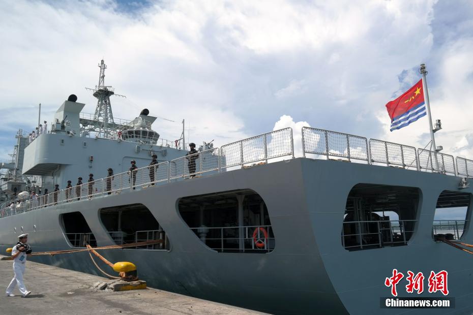 4月30日,由導(dǎo)彈驅(qū)逐艦長春艦、導(dǎo)彈護(hù)衛(wèi)艦荊州艦和綜合補(bǔ)給艦巢湖艦組成的中國海軍艦艇編隊抵達(dá)菲律賓南部達(dá)沃市訪問,受到熱烈歡迎。這支艦艇編隊4月23日從上海黃浦江畔啟航,將赴亞洲、歐洲、非洲和大洋洲20余個國家進(jìn)行友好訪問,菲律賓是首站。圖為荊州艦靠岸。 中新社記者 張明 攝