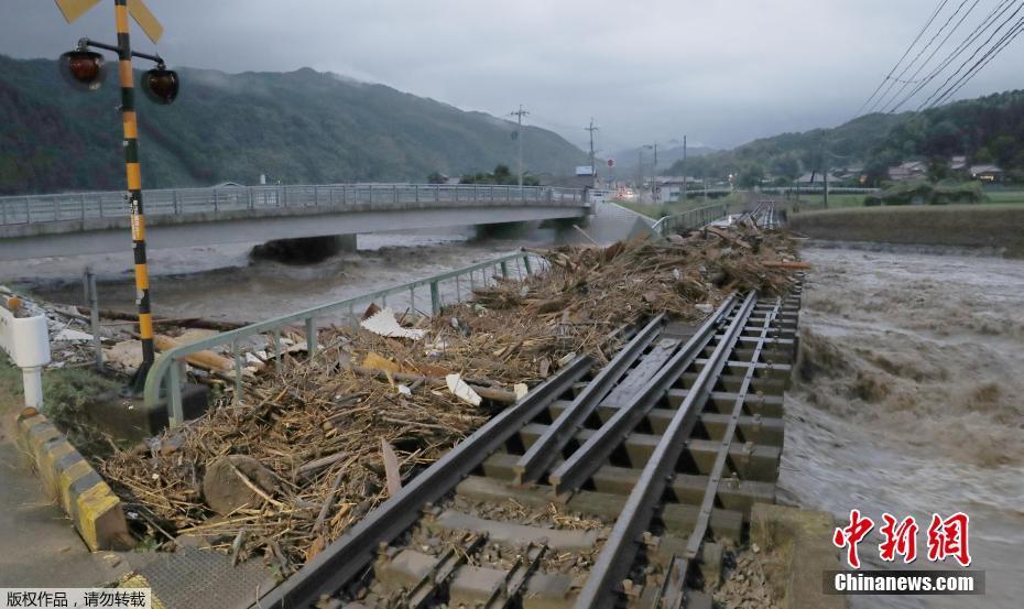 臺(tái)風(fēng)“南瑪都”4日吹襲日本,挾著時(shí)速144公里強(qiáng)風(fēng),在九州島東南部的長(zhǎng)崎登陸,隨后九州島交通陷于癱瘓。圖為九州島福岡縣,洪水過后,鐵道上堆滿了木屑和垃圾。