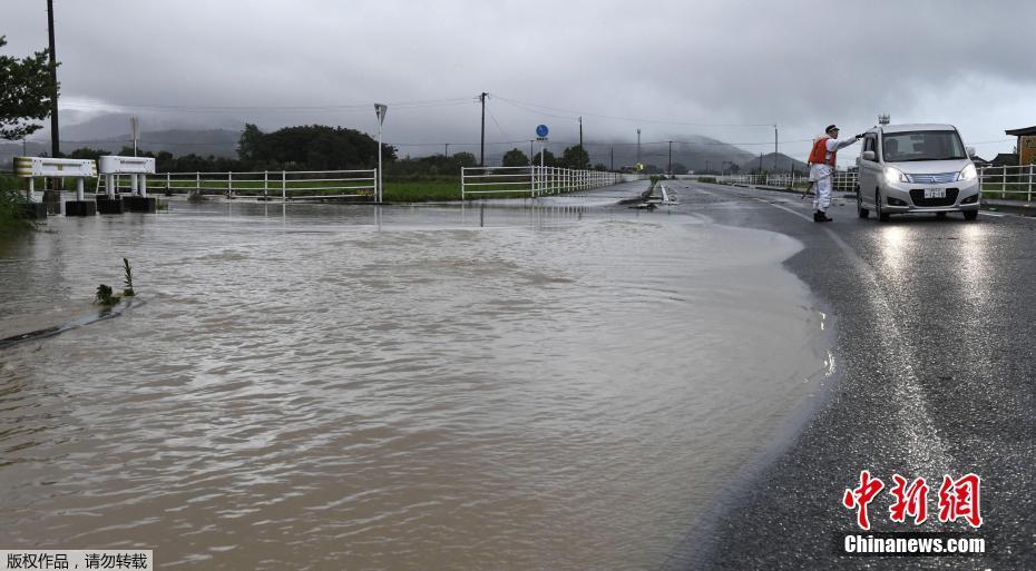 臺(tái)風(fēng)為九州島帶來嚴(yán)重災(zāi)情,熊本及長(zhǎng)崎分別有6.2萬及6,400戶停電,九州島電力公司正在搶修。九州島新干線從博德站至鹿兒島中央站一度全線停駛,博德站至熊本站的南北雙向列車其后恢復(fù)正常服務(wù)。圖為九州島福岡縣,洪水淹沒道路。