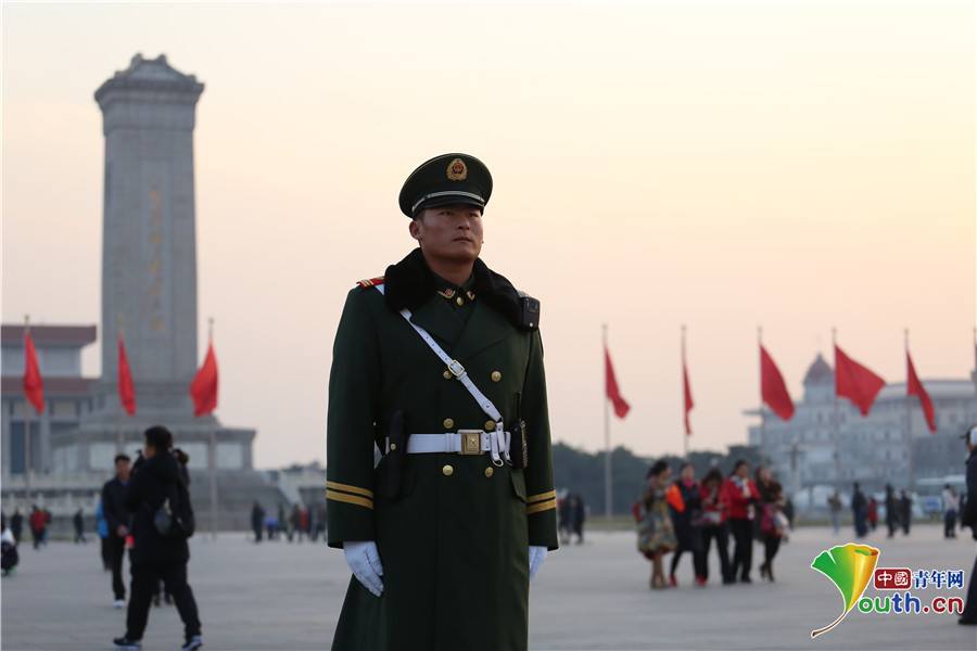 11月19日下午,武警官兵在天安門(mén)廣場(chǎng)執(zhí)勤。中國(guó)青年網(wǎng)通訊員 李超 攝