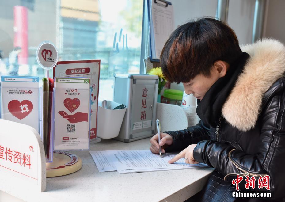 11月26日,浙江省寧波市江北區(qū)莊橋街道李夢小區(qū)北側原李家村地塊外圍空地發(fā)生爆炸。截至目前,該事件造成2人死亡,4人重傷,15人輕傷,2人失聯(lián),部分群眾留院觀察。事件發(fā)生后,當?shù)厥忻褊x躍為爆炸傷員獻血,據(jù)寧波市中心血站統(tǒng)計,截至27日14時,共有306位愛心人士成功獻血,獻血總量達99800毫升。圖為一位市民正在填單準備獻血。 何蔣勇 攝