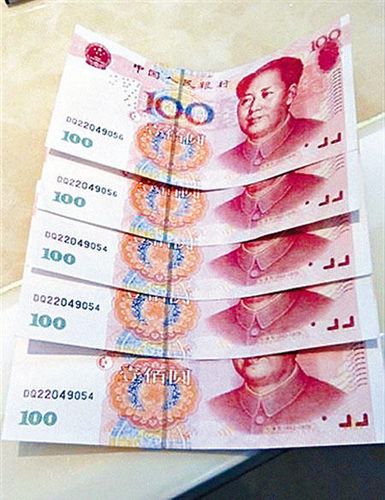 中新網(wǎng)6月19日電 據(jù)香港《星島日?qǐng)?bào)》報(bào)道,一女子昨(18日)到聯(lián)合道樂(lè)富廣場(chǎng)一銀行存款,被揭發(fā)其中14張100元面額人民幣疑是偽鈔,驚動(dòng)警方將其拘捕,連同懷疑“假人仔”帶署調(diào)查,據(jù)悉內(nèi)地近日發(fā)現(xiàn)新一批仿真度極高、鈔票編號(hào)相同假人民幣,香港警方正追查是否有新的“假人仔”流入香港。