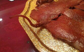 這名被嚇壞的網(wǎng)友,當(dāng)晚將照片發(fā)到網(wǎng)絡(luò),請大家來告訴他這到底是甚么動物。金黃色的盤子上放了“不知名的動物”,眼睛上被插了兩顆櫻桃,尾巴直挺挺的立著,似豬又如鼠一般。