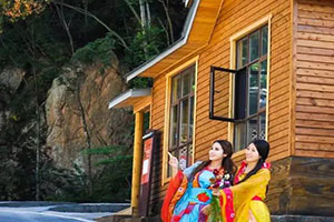 老界嶺為游客準(zhǔn)備了漢服;邀請(qǐng)知名攝影家、模特(七仙女)現(xiàn)場(chǎng)拍照;穿漢服;看表演、品美食、住木屋;