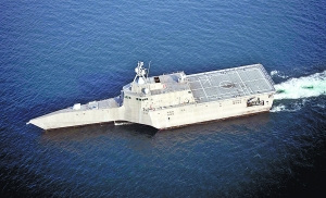 從軍事角度上來說,獨(dú)立級是第一種以實(shí)戰(zhàn)為目的三體艦艇。三體艦的設(shè)計(jì)可以在較小排水量的條件下,帶來更大的甲板面積,這對瀕海戰(zhàn)斗艦有著獨(dú)特的意義。因?yàn)槊绹\娨筮@種新型艦艇不但可以在近海進(jìn)行海戰(zhàn),還要具備相當(dāng)?shù)倪\(yùn)輸能力,能夠有同時(shí)操作兩架直升機(jī)的大型甲板。