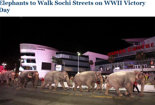 據俄新社報道,俄羅斯國家馬戲公司日前透露,為了慶祝衛(wèi)國戰(zhàn)爭勝利67周年,來自俄羅斯一著名馬戲團的象群將于5月6日在索契的大街上巡游。