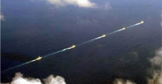 圖為中國昆侖山艦隊(duì)一字縱隊(duì)開往黃巖島海域