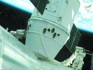 格林尼治時間16時,“龍”飛船成功與空間站“和諧”號節(jié)點艙對接。