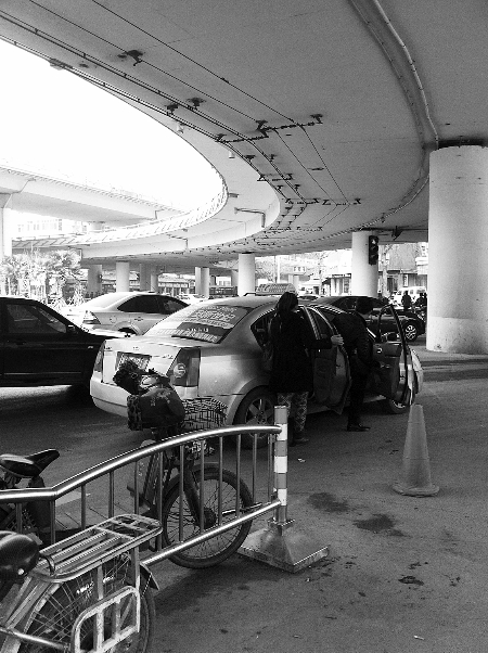 昨天上午10點,在鄭州市大學路和航海路交叉口東北角公交站牌下,記者向4輛已有乘客的出租車招手示意停下,但沒有一輛停下。