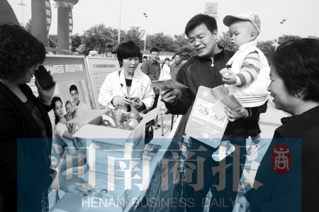 昨天,鄭州市綠城廣場(chǎng)上,疾控工作人員向市民發(fā)放疫苗接種宣傳冊(cè)