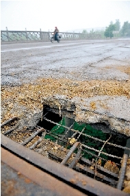 王寨河橋位于S316省道鄭密路18公里700米處,大橋全長約54米,建于上世紀(jì)90年代初,是新密通往省會城市鄭州的必經(jīng)之路,是S316省道鄭密路的咽喉要道。記者在新密市公路局了解到,王寨河大橋于4月28日發(fā)現(xiàn)危情,目前,新密市公安局交警大隊和新密市公路局24小時派專人看守。禁止一切車輛通行。關(guān)于王寨河大橋何日修復(fù),新密市公路局辦公室的劉主任稱,還要等專家勘察結(jié)果出來后才能定奪。
