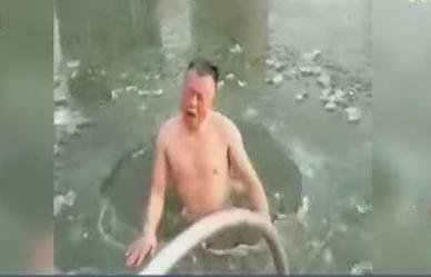 無懼超級(jí)寒潮 男子砸冰面潛水