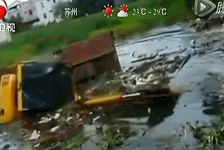 實(shí)拍挖掘機(jī)沼澤沉沒瞬間司機(jī)逃出