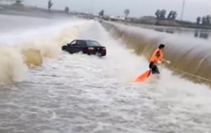 • 轎車被困漫水橋 眾人來救援