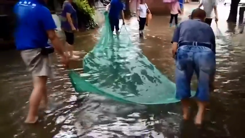 臺(tái)風(fēng)過(guò)境佛山 市民上街撈魚