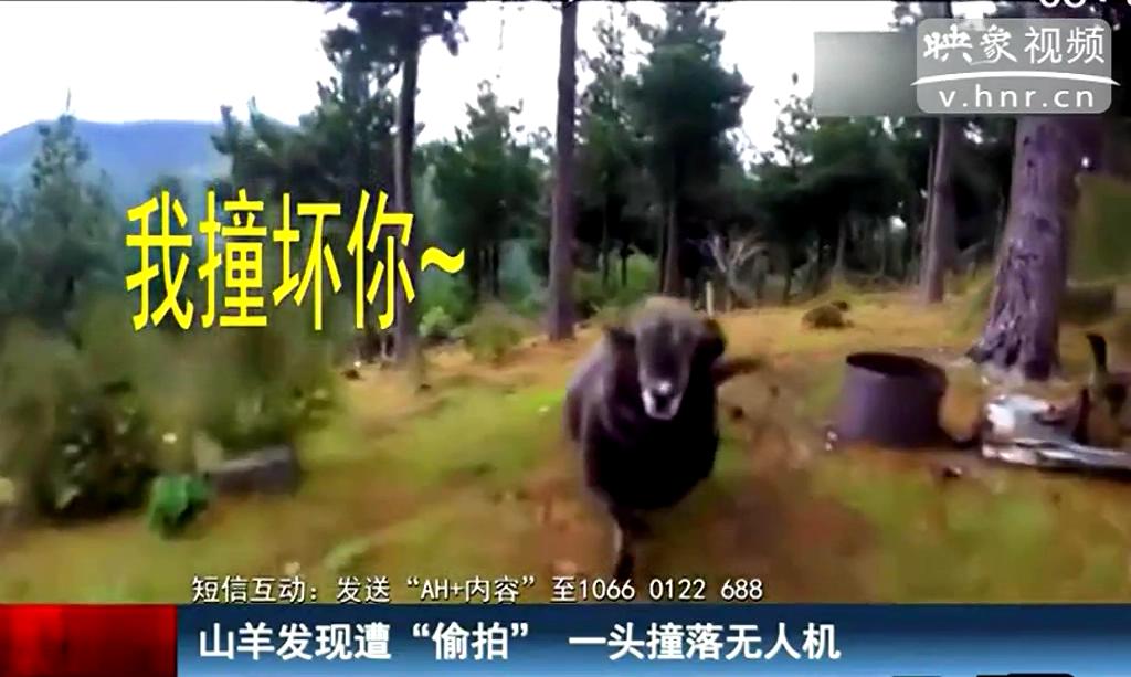 山羊發(fā)現(xiàn)遭“偷拍” 一頭撞落無人機(jī)