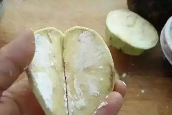 3. 茄子去皮切成連刀片,要切的薄一點(diǎn),便于成熟,抹少許面粉。