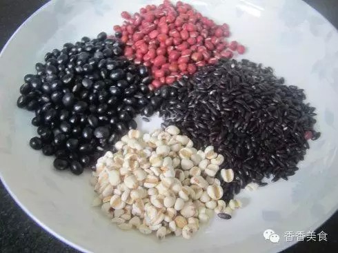 黑豆:味甘性平,具有祛風(fēng)除熱、調(diào)中下氣、解毒利尿、補(bǔ)腎養(yǎng)血、抗衰老、養(yǎng)顏美容的功能。黑豆還含有豐富的抗氧化劑——維生素E,能清除體內(nèi)的自由基,減少皮膚皺紋,達(dá)到養(yǎng)顏美容、保持青春的目的。 紅豆:性平偏涼,味甘,含有蛋白質(zhì)、脂肪、糖類、維生素B族、鉀、鐵、磷等,具有補(bǔ)血、促進(jìn)血液循環(huán)、強(qiáng)化體力、增強(qiáng)抵抗力的效果。紅豆更是女性健康的好朋友,豐富的鐵質(zhì)能讓人氣色紅潤(rùn)。 黑米:性平,味甘,具有滋陰補(bǔ)腎,健脾暖肝、補(bǔ)益脾胃,益氣活血,養(yǎng)肝明目等療效。經(jīng)常食用黑米,有利于防治頭昏、目眩、貧血、白發(fā)、眼疾、腰膝酸軟、肺燥咳嗽、大便秘結(jié)、小便不利、腎虛水腫、食欲不振、脾胃虛弱等癥。 薏米:性平味甘,微寒,有利水消腫、健脾去濕的功效,常食可以保持人體皮膚光澤細(xì)膩,消除粉刺、斑雀、老年斑、皮膚粗糙等都有良好療效。黑芝麻:補(bǔ)肝腎,益精血,潤(rùn)腸燥。用于頭暈眼花,耳鳴耳聾,須發(fā)早白,病后脫發(fā),腸燥便秘。